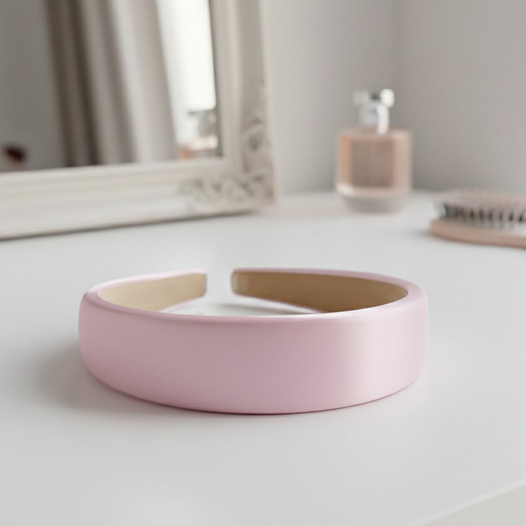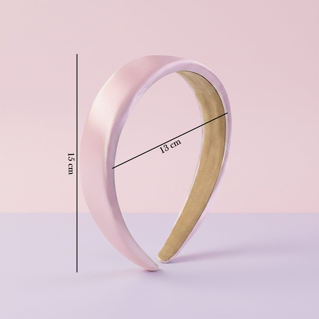 This elegant padded hairband adds a polished touch to any hairstyle while keeping hair neatly away from the face throughout the day. Designed with a smooth satin-like outer finish and a soft inner lining, it sits comfortably on the head without digging in or causing pressure, even during long wear. The wide profile gives a stylish, statement look that works beautifully with open hair, soft curls, ponytails, or low buns. Lightweight yet sturdy, it holds its shape well and stays securely in place, making it ideal for both casual and dressy occasions. Whether used to elevate a simple everyday outfit or to complete a special-occasion look, this headband is a versatile accessory for any wardrobe.