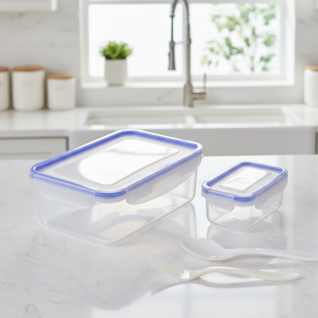 7070 Multipurpose Air Tight 4 Side Lock Food Grade Lunch Box With Small Square Container