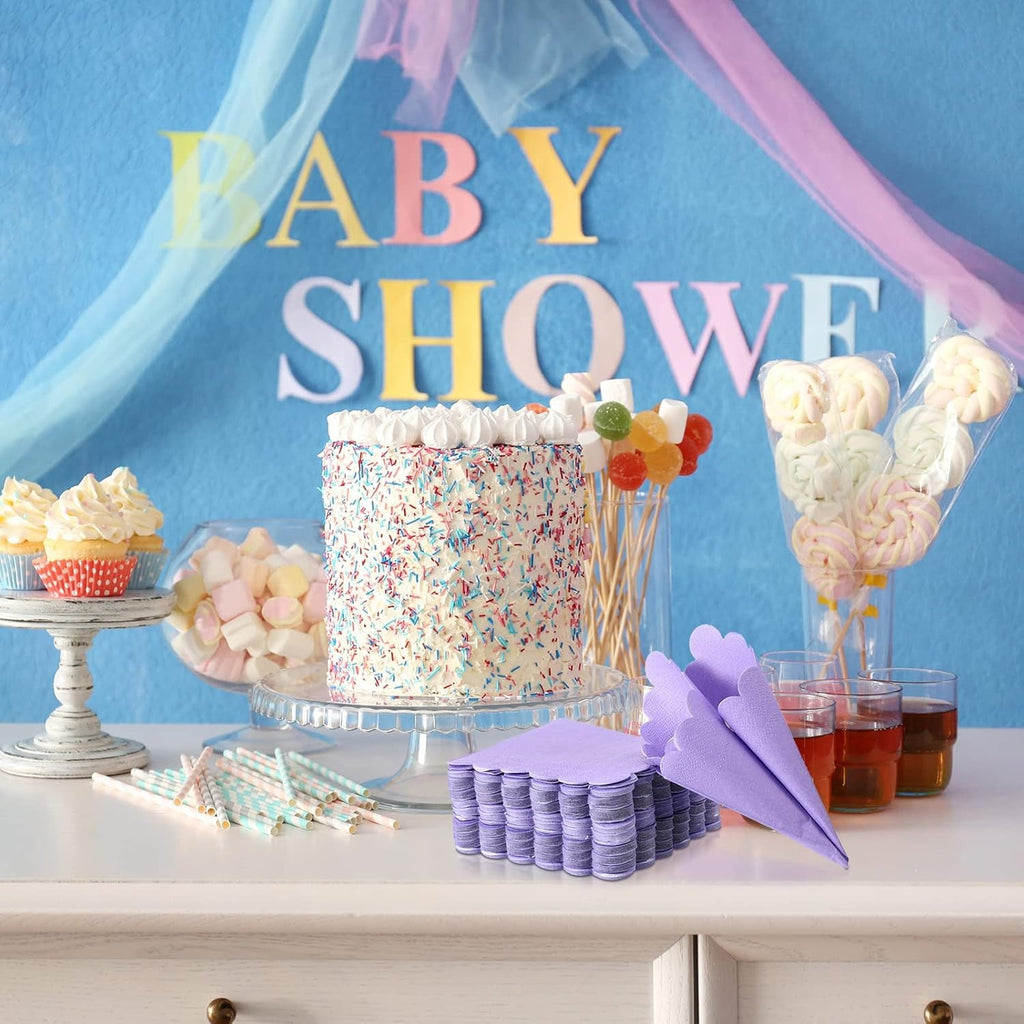 Premium Lilac Scalloped Disposable Paper Tissue – 120 Pcs Party Table Tissue(23 x 23 cm) – Soft, Absorbent, Elegant Tissue for Birthdays, Weddings, Baby Showers & Events