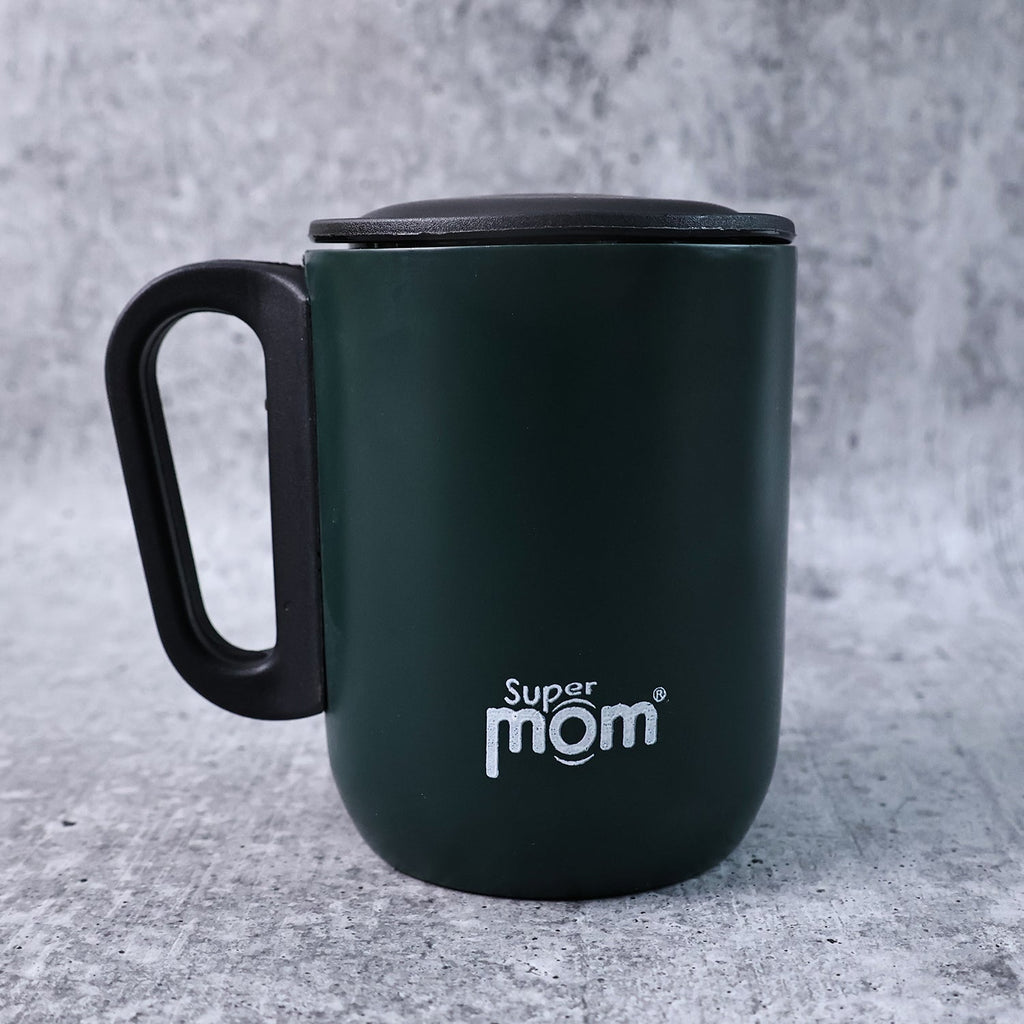 Supermom Metallic Stainless Steel Insulated Mug with Lid – Double Wall Coffee & Tea Cup for Home, Office, and Travel Use