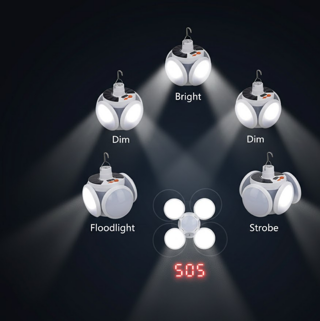 12590 Solar Multi-Functional Emergency LED Light Bulb with USB Charging, LED camping lamp, camping lamp, USB rechargeable, 5 brightness light modes, foldable camping light, SOS IP65 waterproof camping light, blackout emergency equipment, camping gadgets