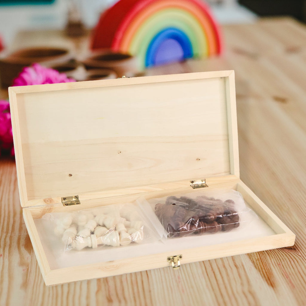 • Material: Wooden Board and Brown/Yellow Polished Wood Chessmen.