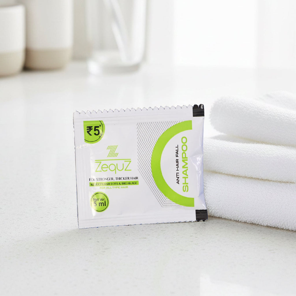 Zequz Anti-Hair Fall Strengthening Shampoo Sachet – Nourishing 5 ml Single-Use Pack for Stronger, Thicker Hair and Reduced Hair Loss & Breakage (For All Hair Types)